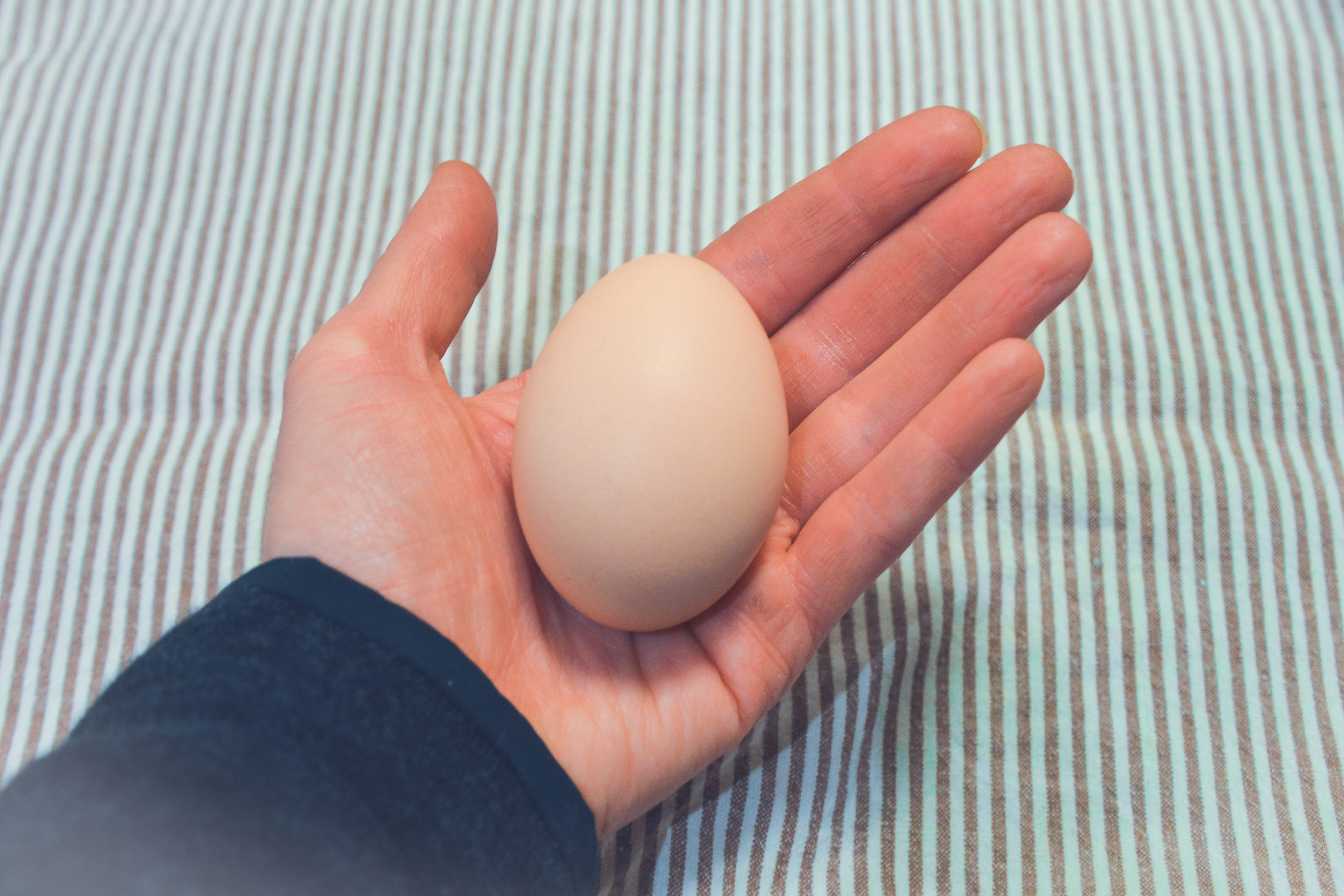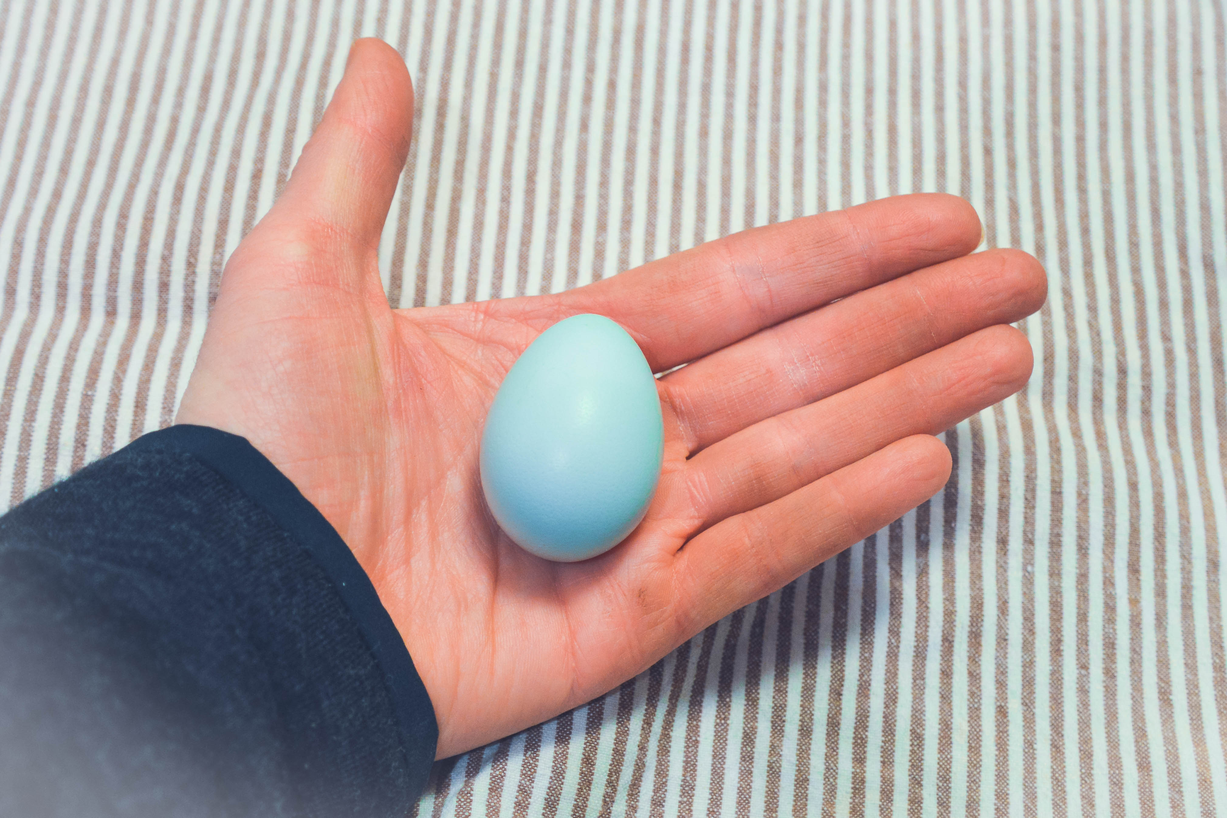 I was greeted with a surprise – a tiny, robin-egg-blue-hued pullet egg laid by one of our new girls, Turmeric. In comparison to the other three eggs I collected, the size was laughable. But at just shy of 4 months old, Turmeric is an early bloomer and roughly only half the size of the older girls.